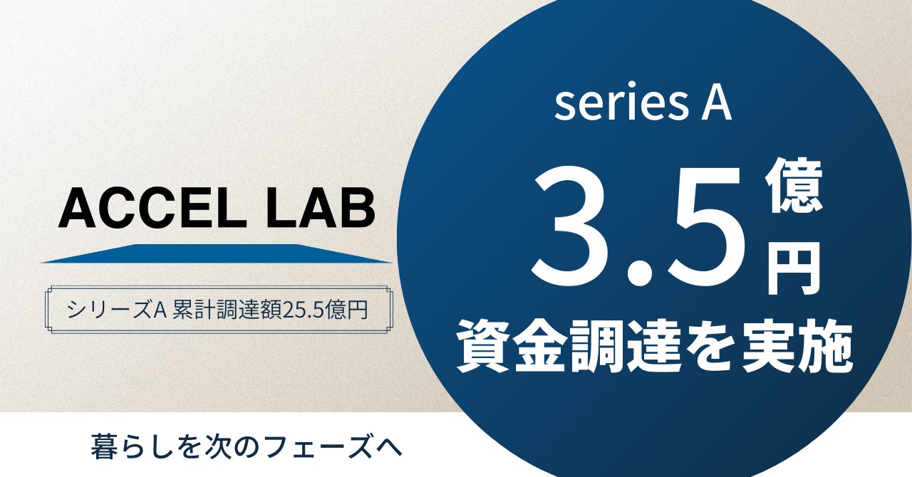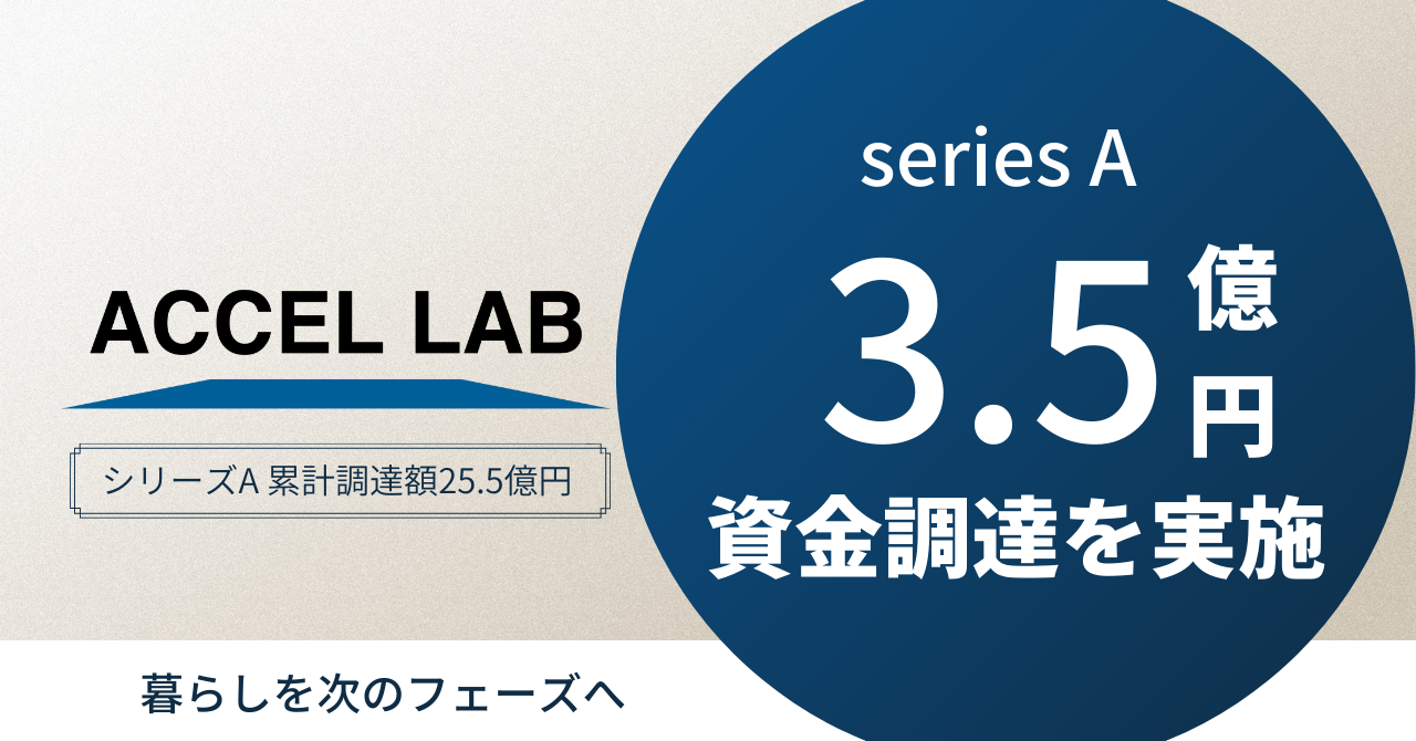 株式会社アクセルラボ(本社:東京都渋谷区、代表取締役:小暮学、 以下当社)は、大東建託株式会社(本社:東京都港区、代表取締役社長:小林克満 以下、大東建託)を引受先とする第三者割当増資により、3.5億円の資金調達が完了し、シリーズAラウンドの資金調達累計総額25.5億円でクローズしたことをお知らせいたします。尚、今後は、更なる開発体制の強化及びユーザーサポート領域の拡充を目的にシリーズBラウンドに移行する予定です。