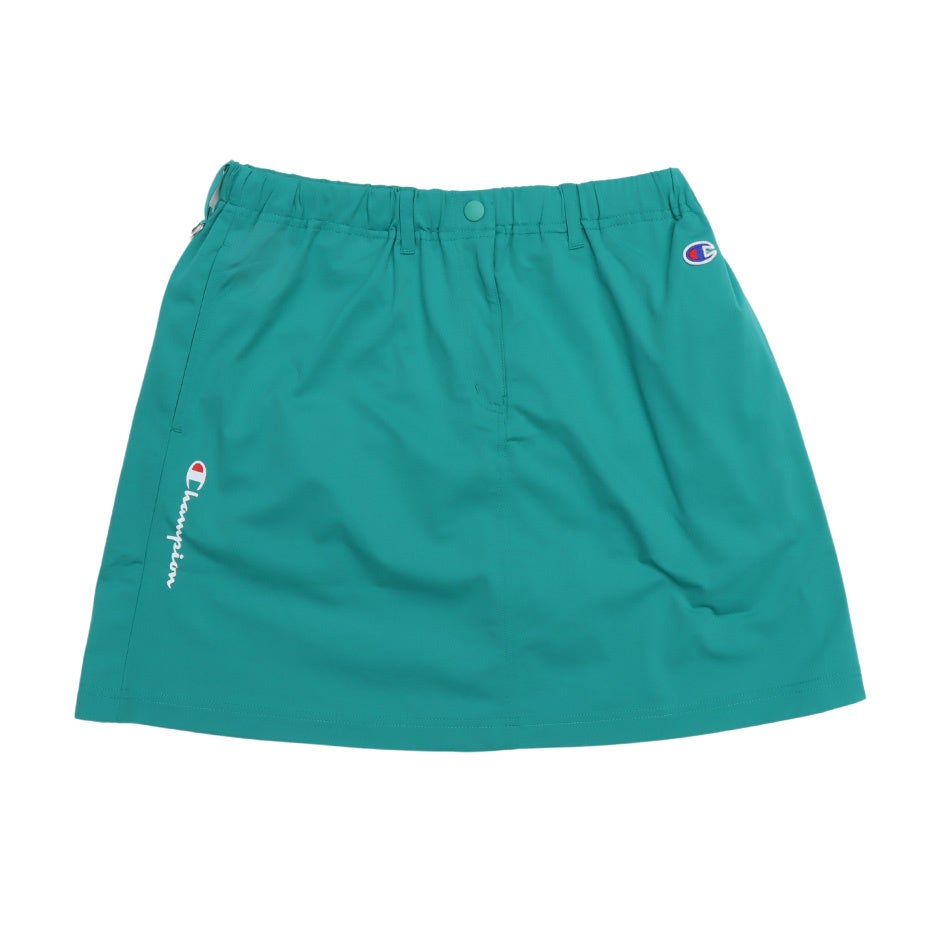 快適なフィット感と動きやすさを向上するストレッチ性を持ち、吸水速乾性・軽量性・耐久性・UVカット機能など優れた特性を多く備えた「Primeflex(プライムフレックス)」に、抗菌・防臭機能を加えたスカートです。裾を広げた動きやすいデザインで、ウエストはゴム仕様なのではき心地が良く、ドローコードも付いています。右正面にラバープリントで「Champion(チャンピオン)」ロゴをプリントし、後部にはDカンを付けました。パンツ型のインナーも別付けしています。