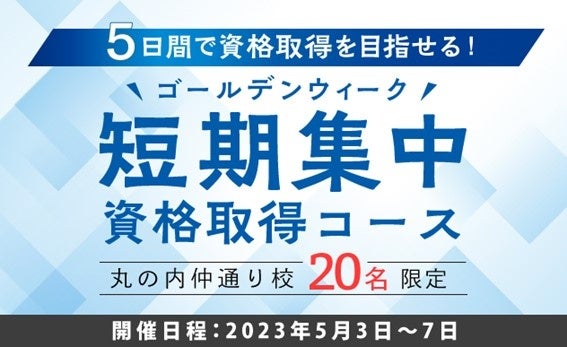 たった5日間で認定資格の取得が目指せる『短期集中資格取得コース』をゴールデンウイーク(5月3日~7日)に、丸の内仲通り校にて 開講いたします。