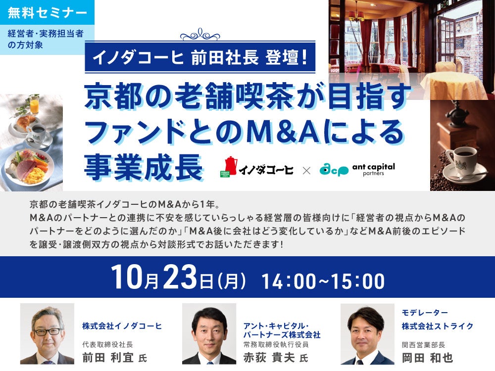 『イノダコーヒ×アント・キャピタル・パートナーズ』 ~京都の老舗喫茶が目指すファンドとのM&Aによる事業成長~ セミナー開催のお知らせ