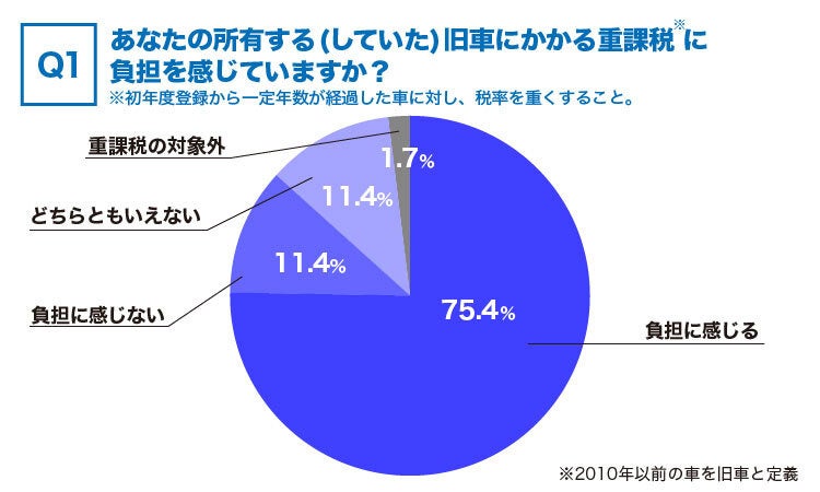 旧車乗りに旧車にかかる重課税について負担を感じているか聞いてみると、75.4%の方が負担に感じると回答しました。