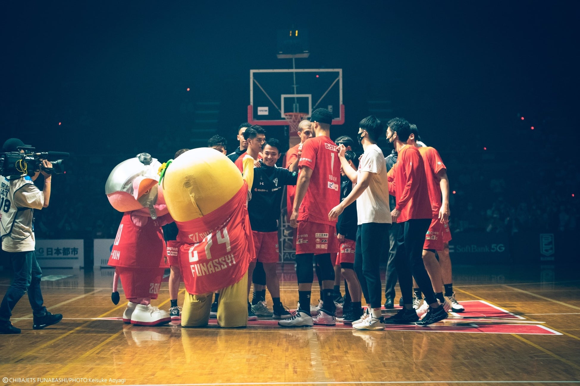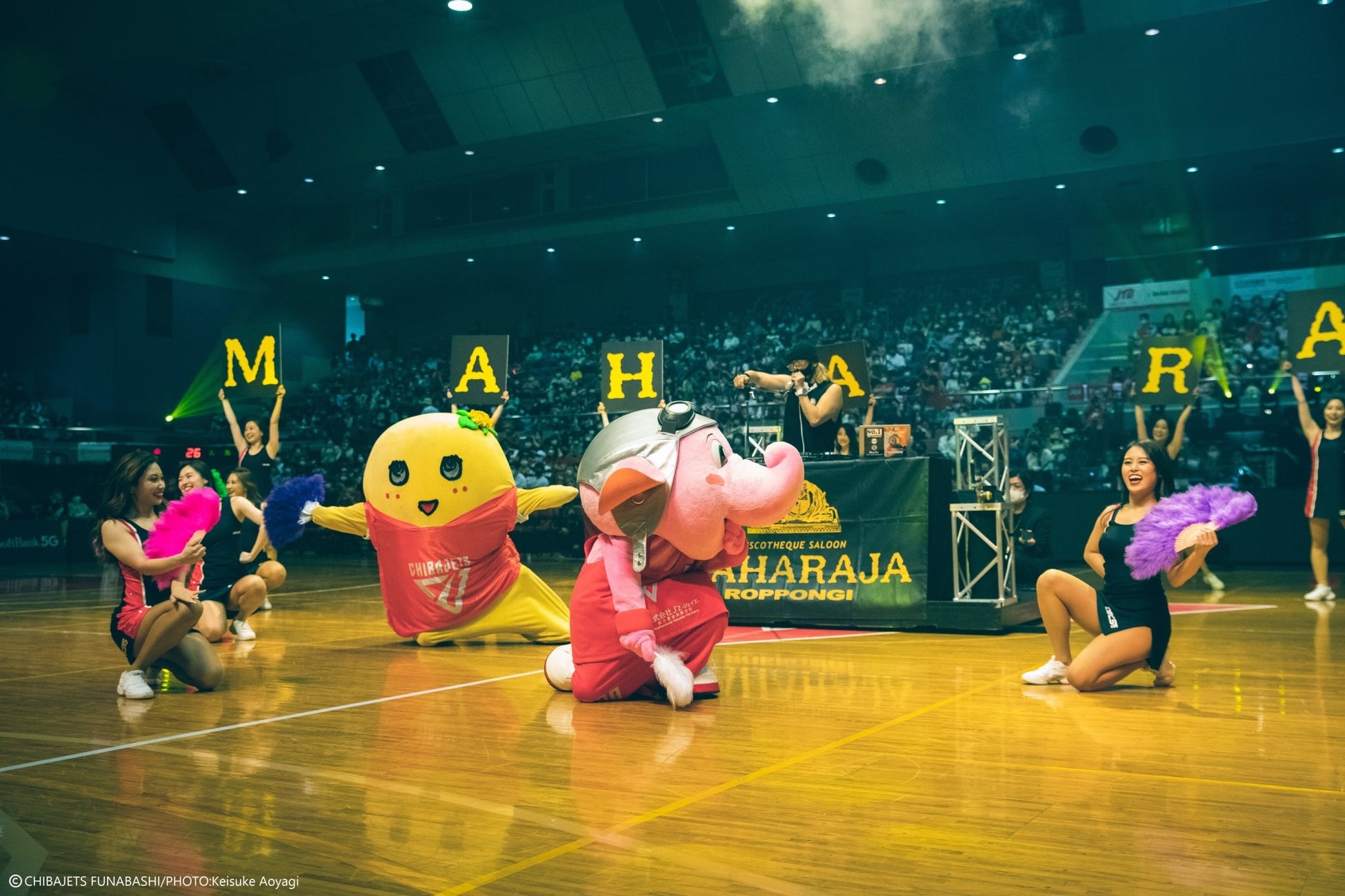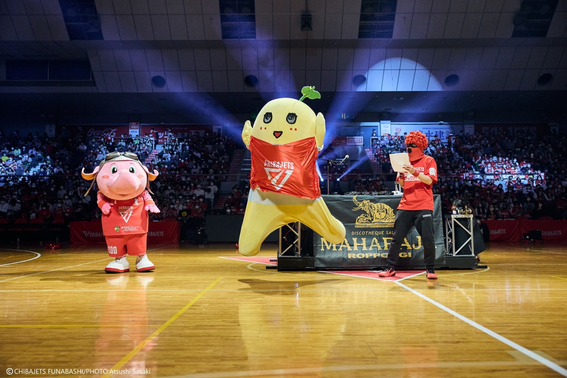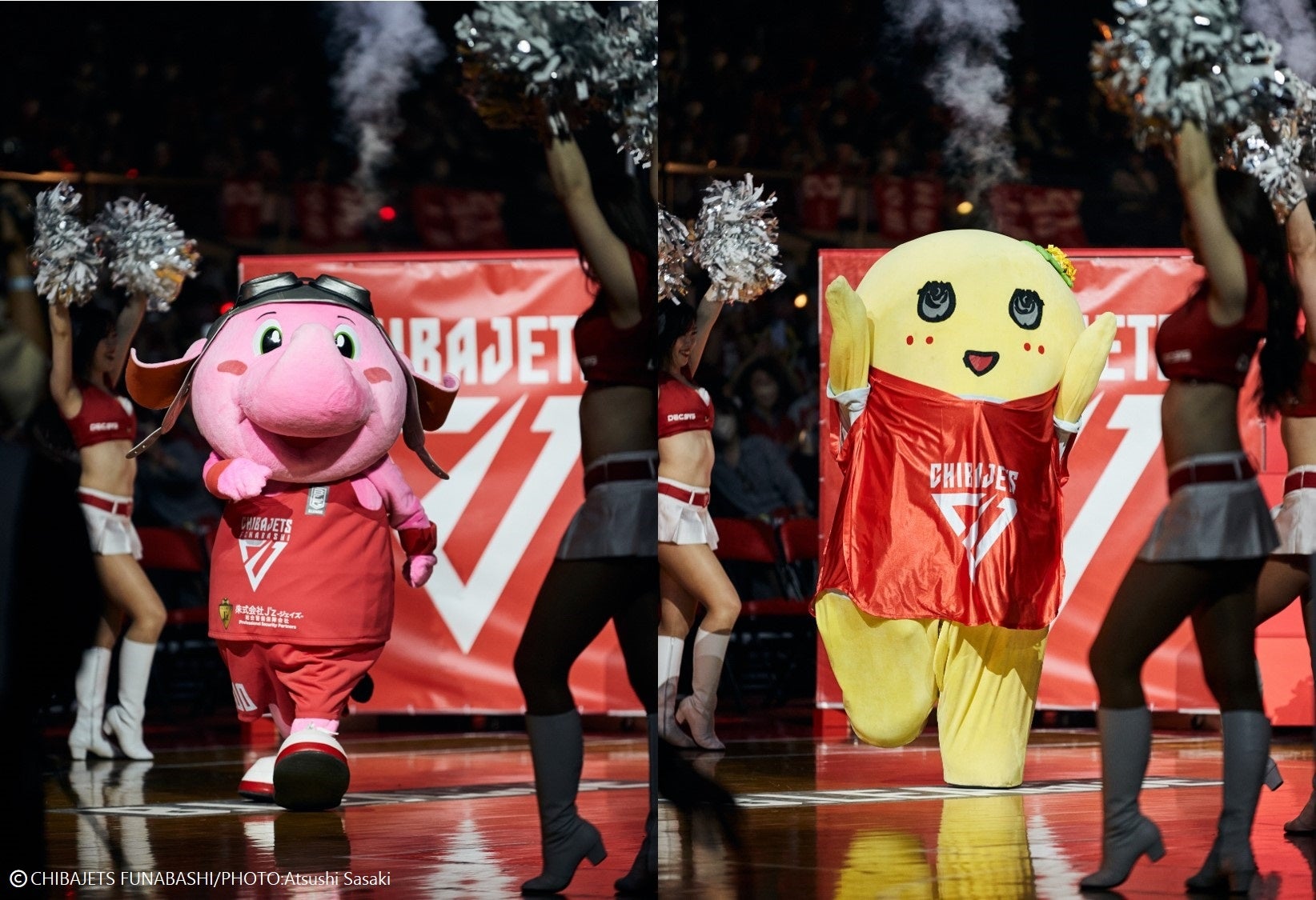千葉ジェッツふなばし試合前に開催されるエンターテインメント演出「オープニングフライト / 選手入場」に出場。選手、大野ヘッドコーチと共に「期限付きプロ契約選手 #200ジャンボくん、#274ふなっしー」とコールをされ、コート上に登場。全選手との記念撮影参加に加えて、ハドル(円陣)にも参加し、チームの一員として勝利を誓い合った。