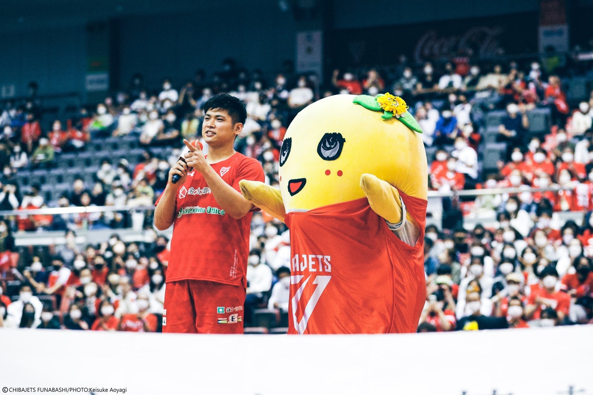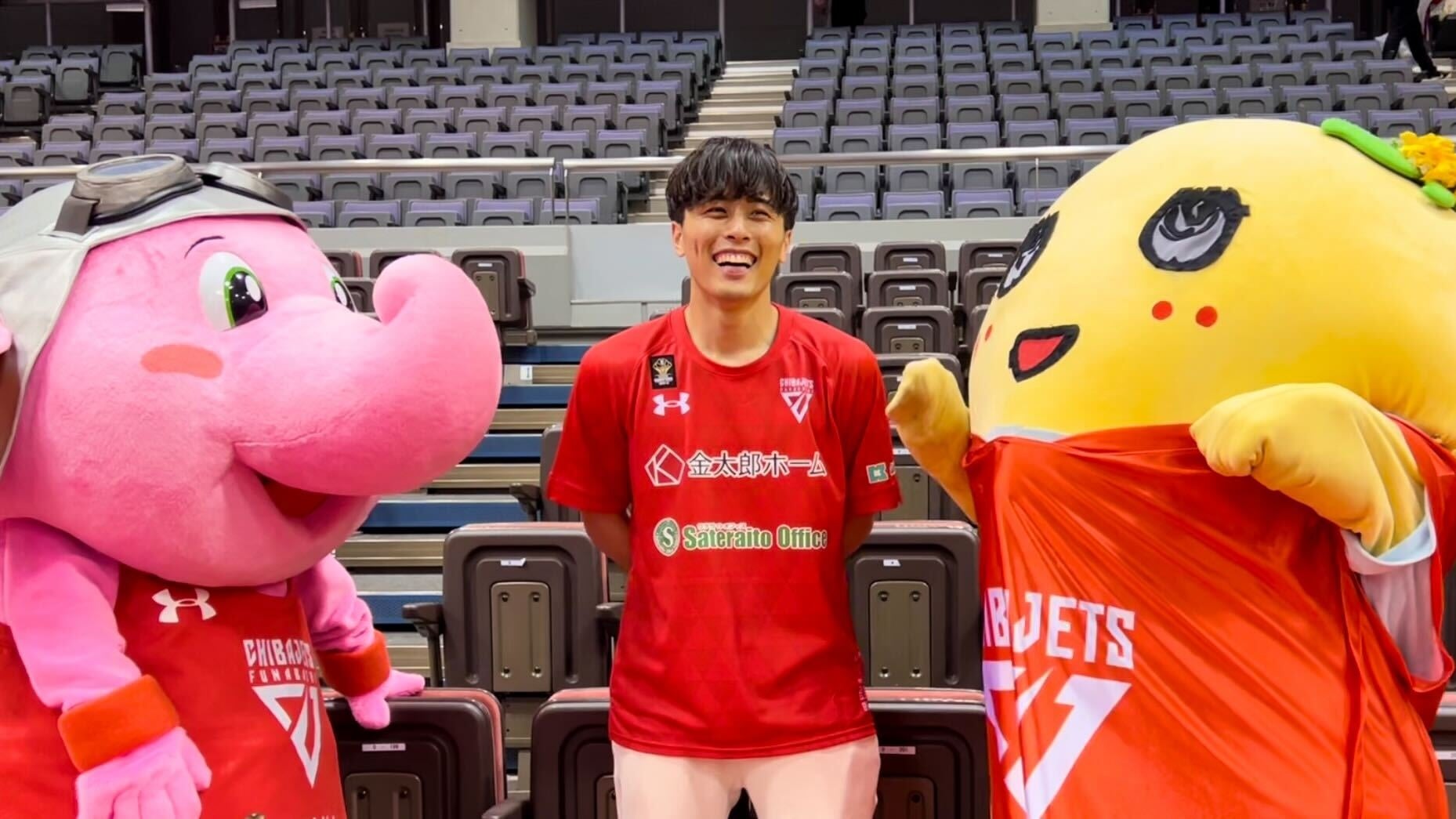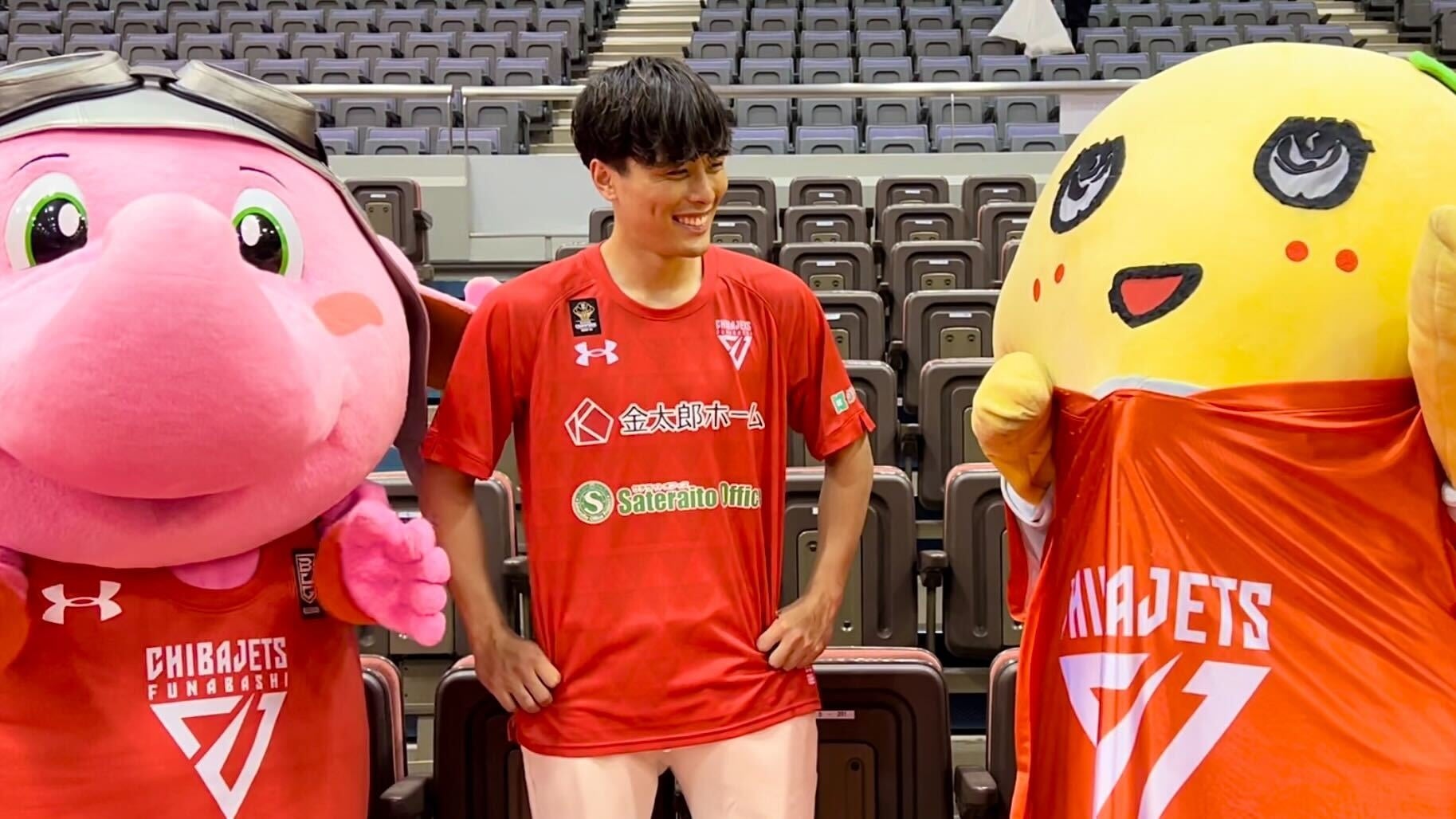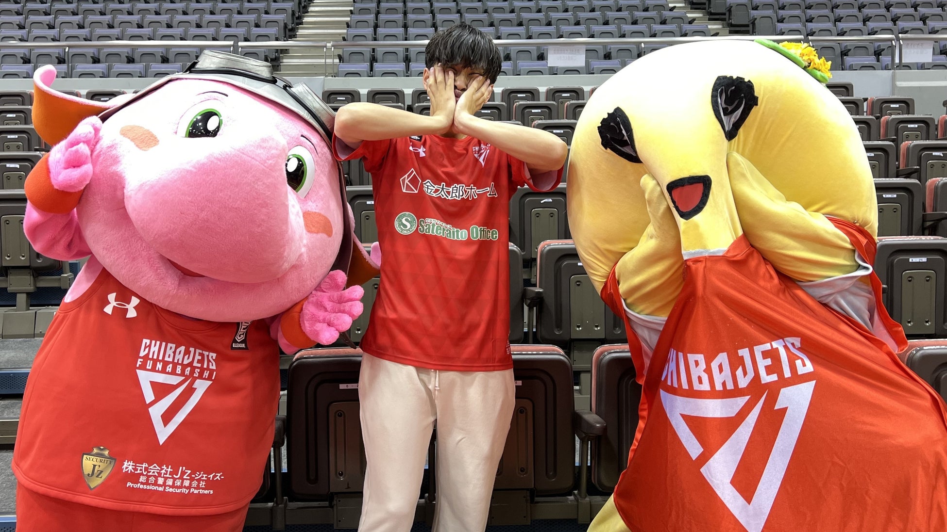 3年連続で船橋アリーナにふなっしーが来てくれる事は本当に嬉しいです。おーみさん(大宮選手)ともずっと話してたんですけど、ふなっしーのポテンシャルやオーラやキャラクター性のスゴさには毎回、勉強させられてます。ふなっしーの来シーズンベンチ入りに向け、アドバイスするとしたら、もっとバックボードを上手く使ってシュートした方が良いと思う。シュートの高さや精度は年々上がってきてるからバックボードに当てて入れるイメージで練習してきたら、来シーズンは絶対に決められるし、スタメンを掴める可能性もあるから頑張ってね!!いつか一緒にプレーできる日を楽しみにしてます。さりげなくベンチに座ってちゃダメなのかな?(笑)もうれっきとしたジェッツファミリーなんだし、それができたらすごく面白いけどな。