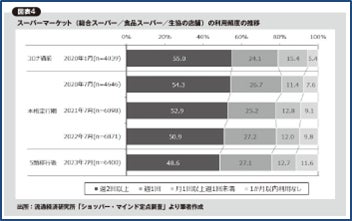 出所:田嶋元一、山﨑泰弘(2023)「購買データからみたコロナの流行と収束による食品購買の変化」『流通情報』2023年11月号