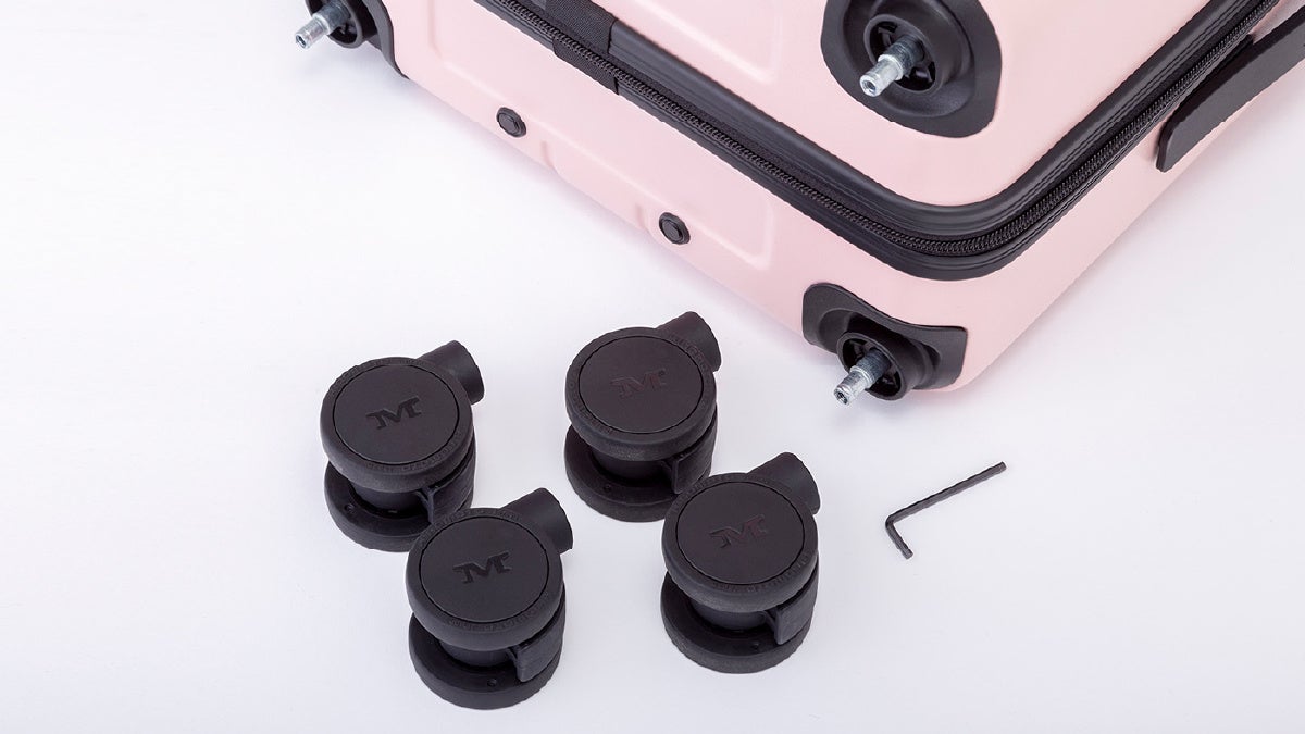 MAIMOのスーツケースは、付属の六角レンチで簡単にキャスター交換可能。キャスターの故障でスーツケースを買い替える必要がないので、長く快適にお使いいただけます。