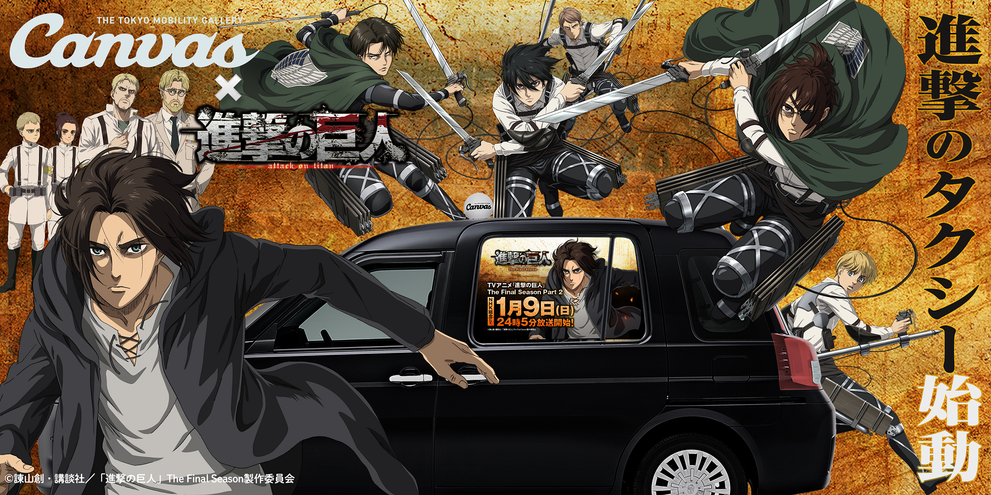 『進撃の巨人』The Final Season Part 2放送記念人気キャラクターがCanvasタクシーをジャック!タクシーアプリ「S.RIDE」で呼べる『進撃のタクシー』が登場