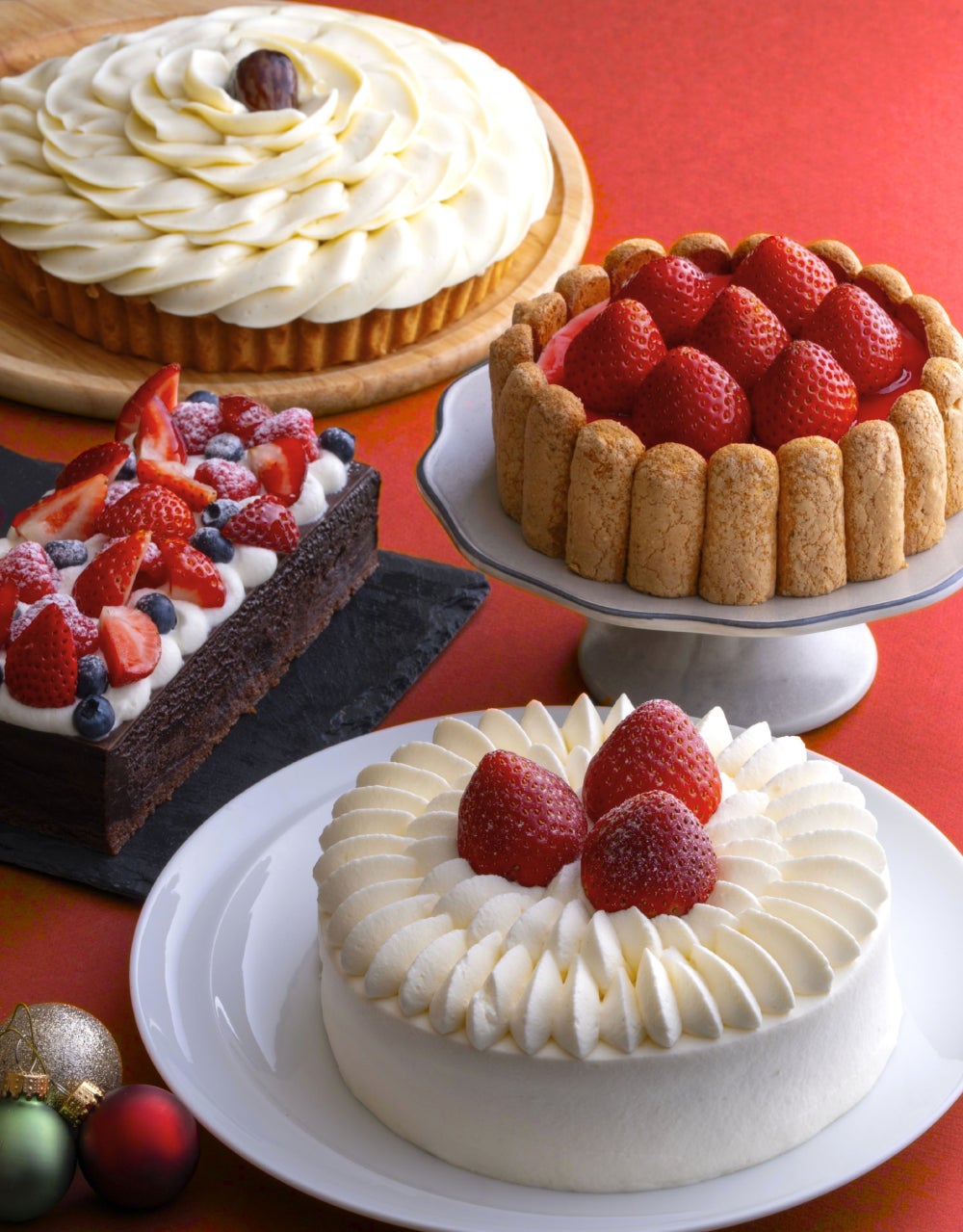 ブティックで長年愛されている「ヘブンチョコレートケーキ」を、クリスマス限定の特別なスタイルに仕立てました。ベースとなるのは、チョコレートと卵白を丁寧に合わせ、低温でじっくりと焼いた、口どけなめらかなガトーショコラ。その上にシャンティクリームとフレッシュなミックスベリーを贅沢に飾り付け、華やかさとみずみずしい酸味をプラスしました。チョコレート好きの方にお選びいただきたい一品です。