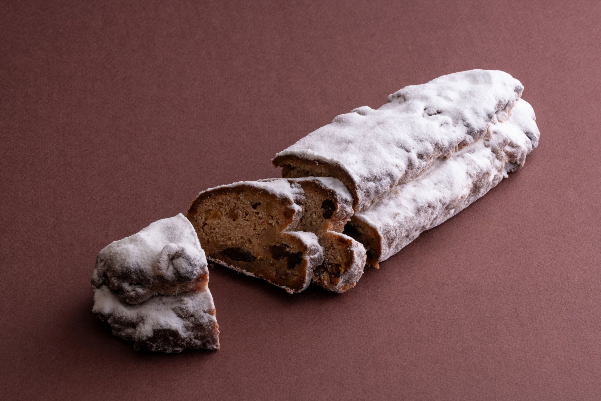クリスマスに定番のドイツ伝統的菓子。ラム酒に漬けたドライフルーツとローストしたクルミを練りこみ、国産バターをたっぷりとしみこませました。手間をかけて作り上げる自慢のシュトーレンは、時間が経つほどしっとり熟成し、深みが増して味わい深くなります。フルーツとスパイスの芳醇な香りはコーヒーや紅茶はもちろん、ワインとの相性も抜群!クリスマスの日を心待ちにしながら、少しずつスライスしてお召し上がりください。ホリデーギフトにもおすすめです。