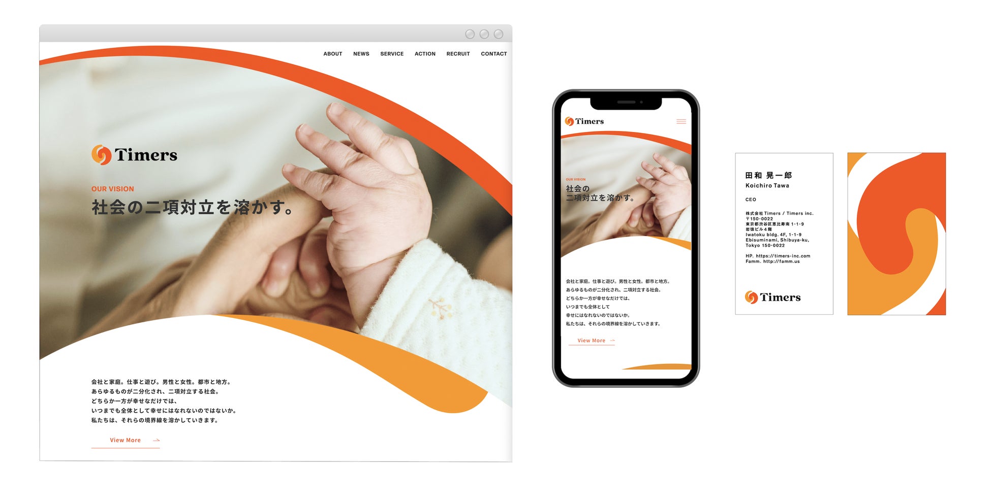 今回のCI・VIのリニューアルプロジェクトは、ビジョンニングファームである株式会社NEWPEACEにコピー・デザインディレクション全般を担当いただき、VIの策定や公式サイトのリニューアルには、デザインユニット「knot」の森田賢吾氏、増田圭吾氏、写真家の神藤剛氏にも参画・協力いただきました。株式会社NEWPEACE代表の高木新平氏とTimersの代表の田和との本プロジェクトに関する対談noteも本日より公開しています。
