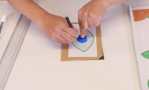 4. 厚紙や空き箱などに、ペットボトルのキャップほどの大きさの穴をカッターで開け、空けた穴の裏にカプセルの半分をセロハンテープで貼り付けます。