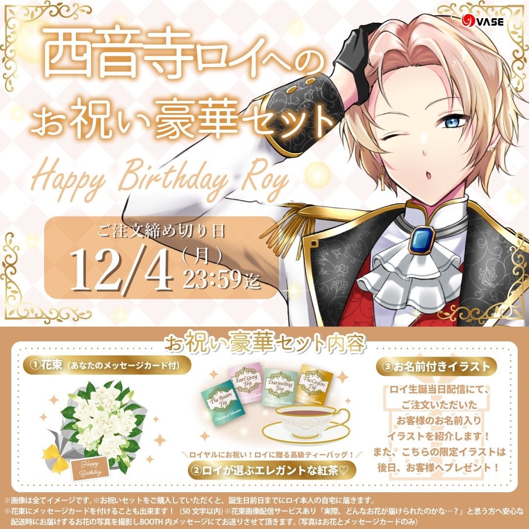 生誕当日に西音寺ロイ本人に届く「お祝い豪華セット」を受付中。