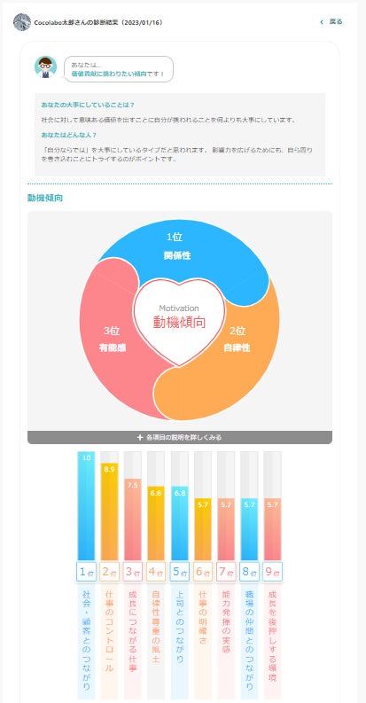 エンゲージメント向上を軸とした組織開発・人材育成コンサルティング支援を行う株式会社NEWONE(本社:東京都千代田区 代表取締役:上林周平、https://new-one.co.jp/ 以下、NEWONE)は、2022年4月よりエンゲージメント向上施策として各企業に「Cocolabo(ココラボ)」を導入してまいりました。この度、そのノウハウを活かし、職場での相互理解を支援するツール「Cocolabo(ココラボ)カルテ」を、2023年1月20日より開始いたします。