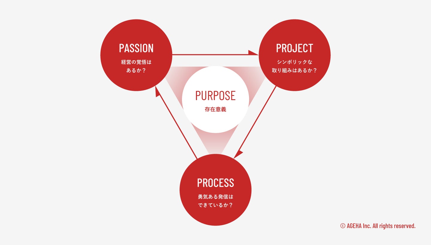 世界中の企業に求められるサステナビリティ経営は、自社だけでは実現できず、お客様・サプライヤー・従業員・求職者・投資家など、すべてのステーホルダーとの「共創」による価値創出が欠かせません。現在多くの企業が掲げるようになった「パーパス(存在意義)」ですが、共創を実現するためには、パーパスに沿った3つのP(パッション、プロジェクト、プロセス)を意識した行動により、「共感」を生むことが重要です。