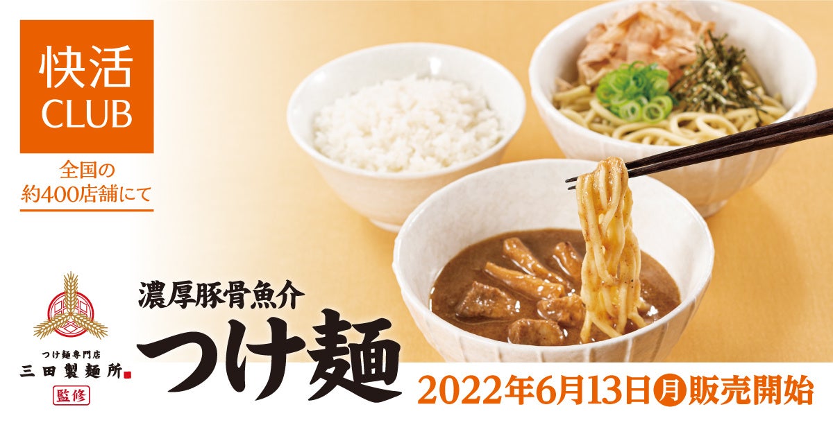 6/13(月)より全国の快活CLUB約400店舗にて三田製麺所監修の『濃厚豚骨魚介つけ麺』を販売