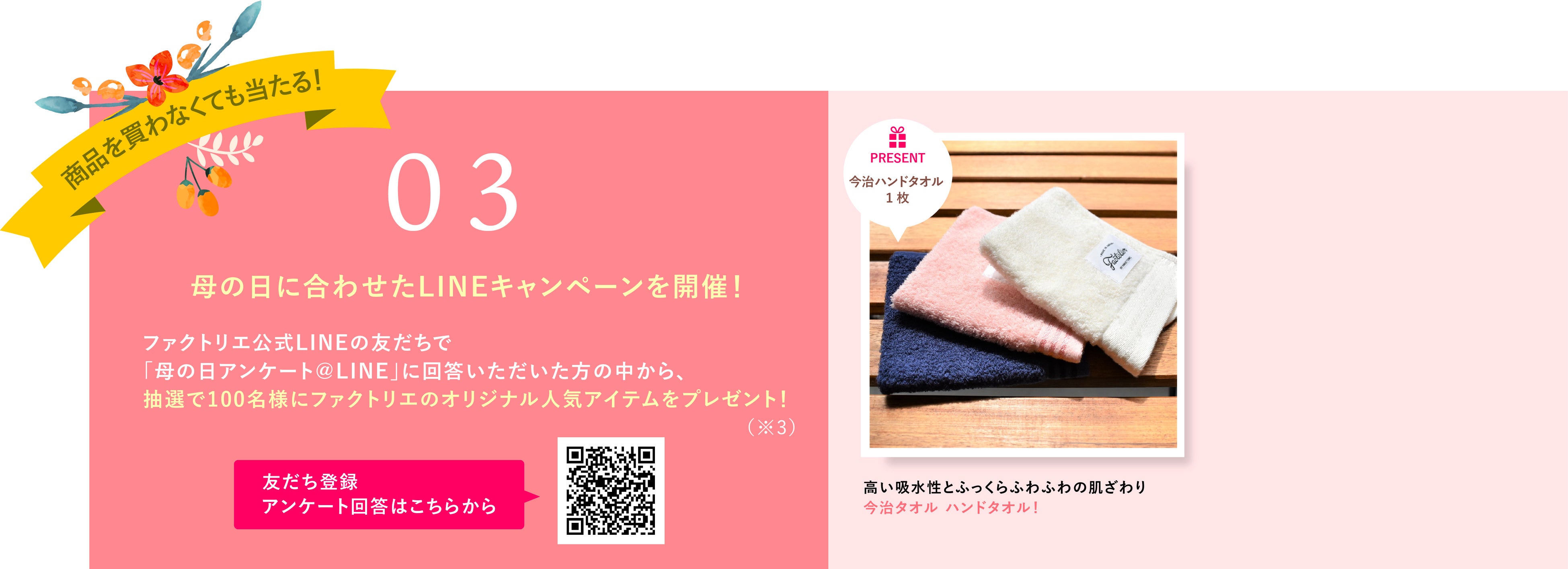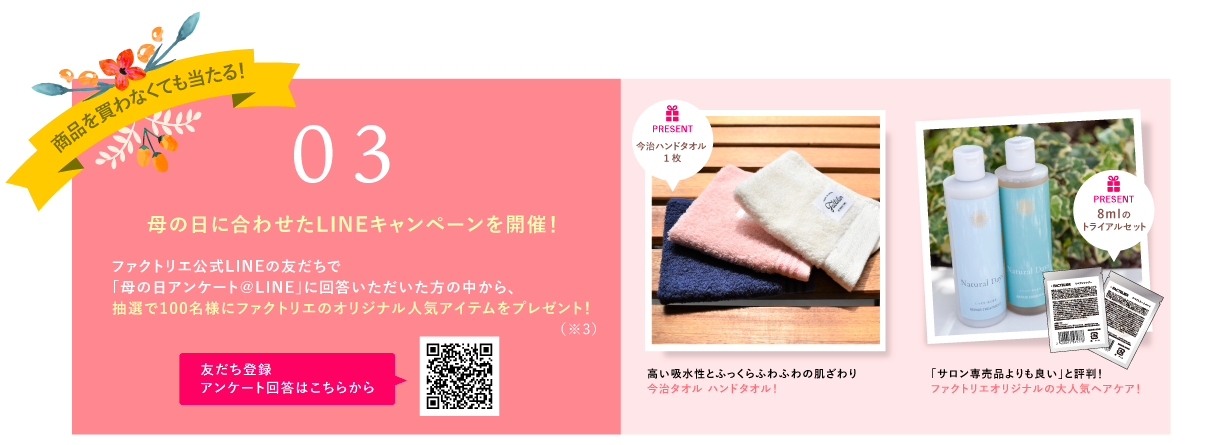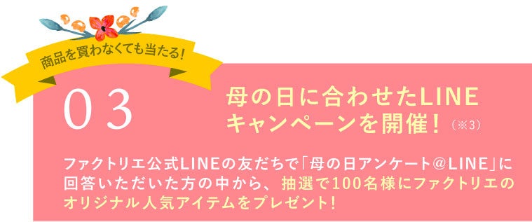 ファクトリエ、母の日に合わせキャンペーン実施!〜LINE限定のプレゼントキャンペーンなど3大キャンペーン〜