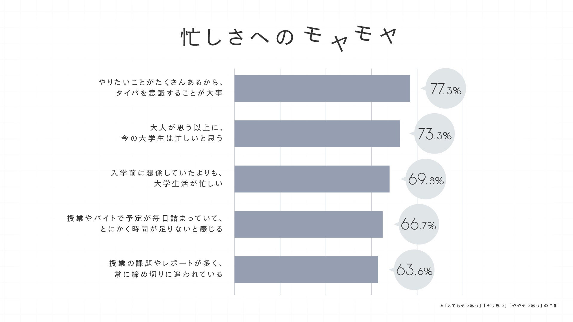 7割以上が“忙しい”と感じる大学生活。やりたいことの多さとタイパ意識への共感が1位に