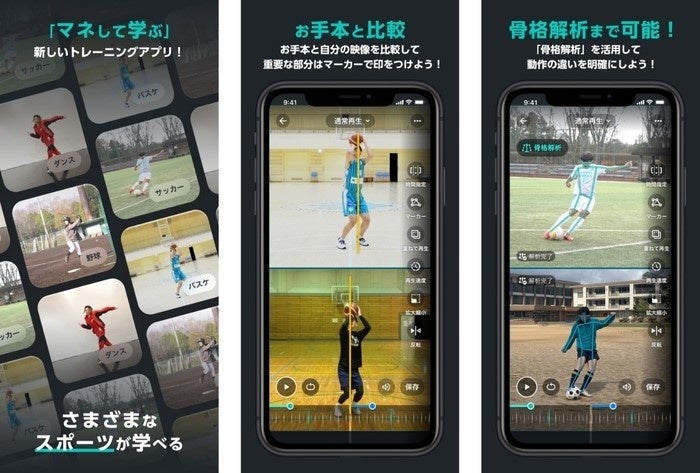 「AIスマートコーチ」内にある動画は筑波大学やプロダンスリーグ「D.LEAGUE」の選手として活躍するダンサーなどによって指導・監修されており、小中学校の体育の授業や部活動や自主練習など、さまざまな場面で活用できる練習メニュー動画などのコンテンツが順次追加されています。ダンスのコンテンツの他にもバスケットボールや野球、ゴルフなど15種目に対応しており、スマホを使って自分で“マネして学ぶ”ことができるトレーニングアプリとして、子どもたちのスポーツスキル向上のサポートを目指しています。