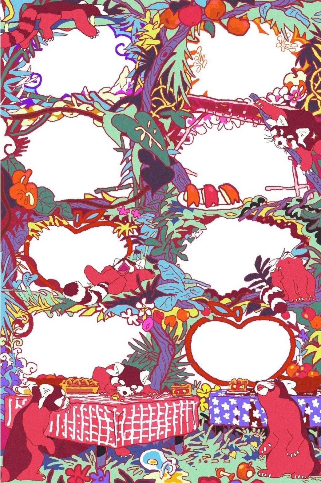 フレーム説明文:リンゴの事で頭がいっぱいなレッサーパンダたちのフレームです。みんなでおいしいリンゴを収穫しよう!