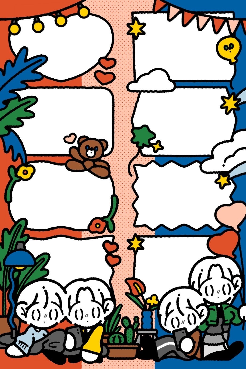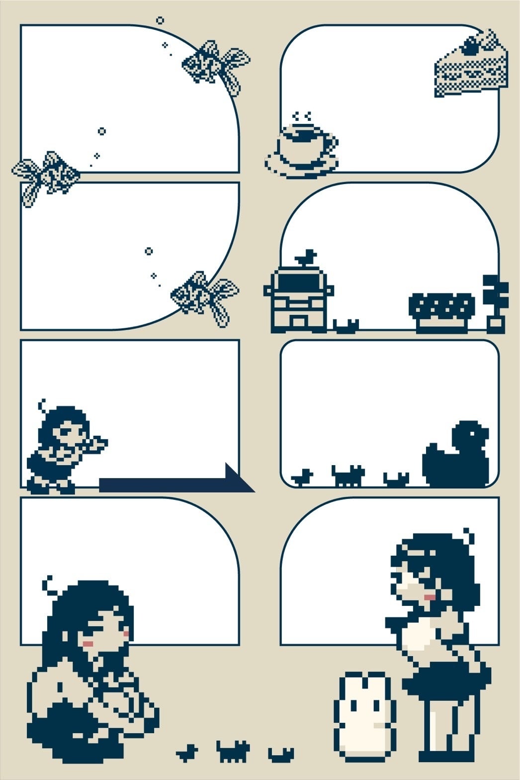 フレーム説明文:レトロな町での生活をイメージしたフレームです。金魚鉢、喫茶店、動物たちなどレトロな暮らしを彩る仲間たちが出迎えてくれます。