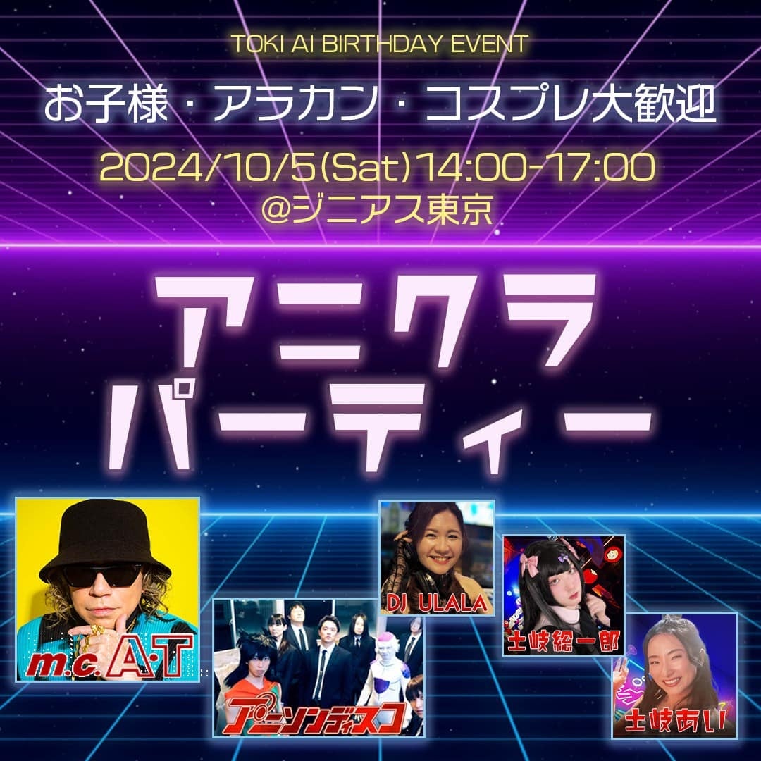 10月5日(土)14:30〜 子供から大人まで楽しめる『アニクラパーティー』をジニアス東京にて開催!会場が一体となる楽しさ満載の多彩なアニメソングが集結!ときあいの誕生日を記念して開催。