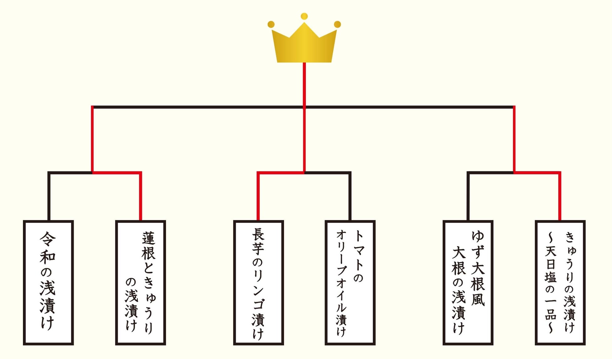 形式:毎週水曜日に2品ずつ浅漬けを提供。ご来店いただいた方に