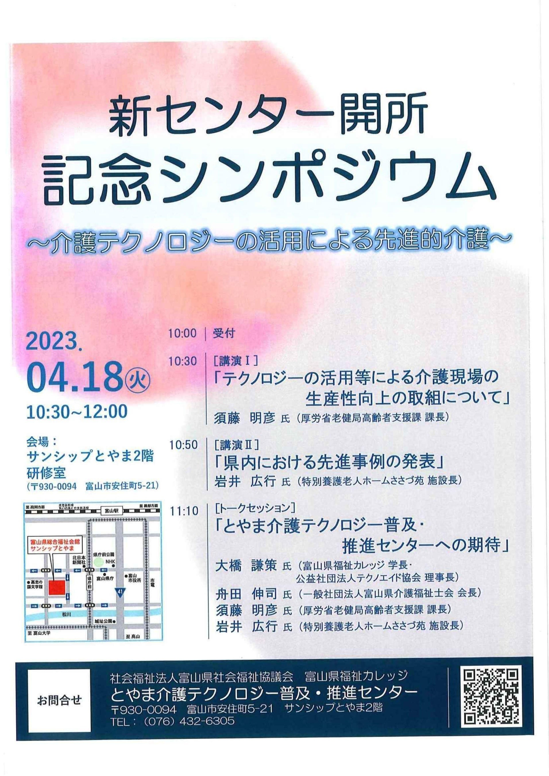 4月18日に同所で開催される「新センター開所記念シンポジウム~介護テクノロジーの活用による先進的介護~」にも「TANO」をブース出展します。