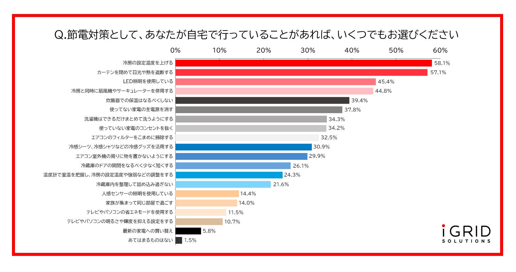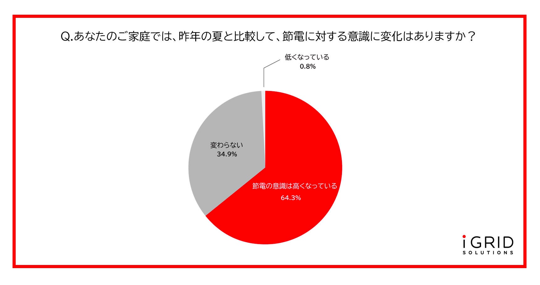 株式会社アイ・グリッド・ソリューションズ(本社:東京都千代田区、代表取締役社長:秋田 智一、以下「アイ・グリッド」)は、提供する電力供給サービス「スマ電およびスマ電CO2ゼロ」契約者を対象に、「夏の節電に関する意識調査」を実施いたしました。