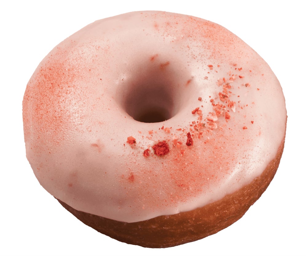 桜風味のグレーズに、ストロベリーパウダーとサクサク食感のドライストロベリーをトッピングしました。爽やかな春の香りを感じる、淡いピンク色の春季限定ドーナツです。