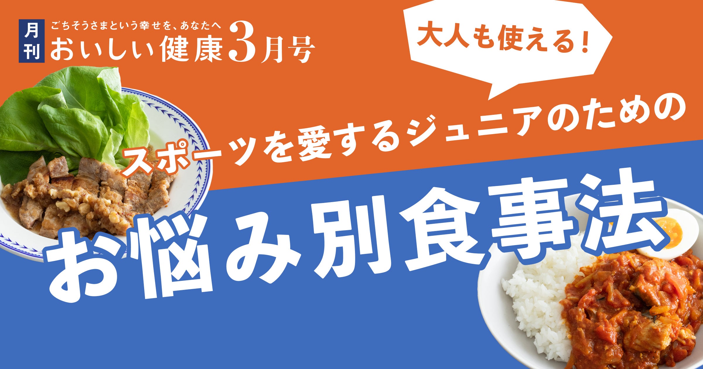 パーソナライズ献立提案・栄養管理アプリ「おいしい健康」の3月特集、「スポーツを愛するジュニアのためのお悩み別食事法」および、「フレイル予防に、骨と筋肉を維持するお手軽レシピ」を公開いたしましたのでお知らせします。