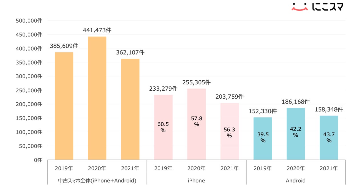 中古スマートフォンのECサイト「にこスマ」を運営する伊藤忠商事グループの株式会社Belong(所在地:東京都港区、代表取締役社長 井上 大輔)は、2021年度(2021年4月〜2022年3月)中古スマートフォン取引実績調査レポートを公開いたしました。