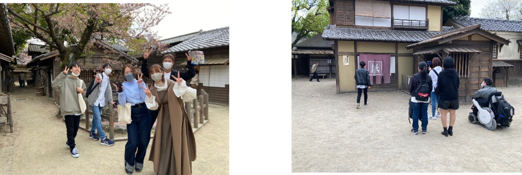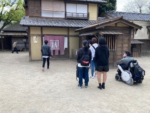 映像学科は東映太秦映画村を訪れ、京都東映撮影所内の見学や、太秦映画村のオープンセットを使ってグループごとにショート動画を撮影するなど、関西の強みである時代劇に触れつつ、今後の学生生活を共に歩む仲間たちとの交流を深めました。