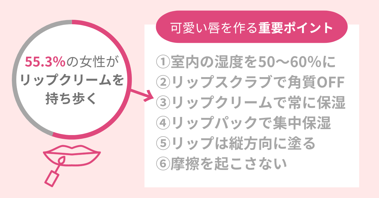 55.3%の女性がリップクリームを持ち歩く!保湿徹底でモテ唇を作る