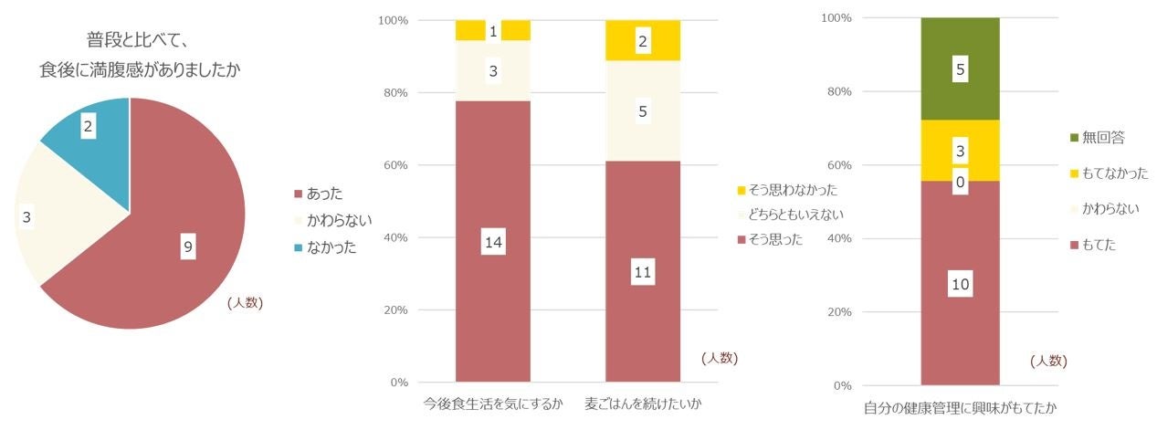・もち麦による満腹感の持続によって間食する人が減ったと考えられる。