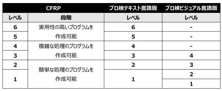 プログラミング能力検定協会が提供するプロ検はCFRPに準拠しております。プロ検を受検いただくことで、CFRPに沿い現状のプログラミング能力値を測定・把握することが可能です。