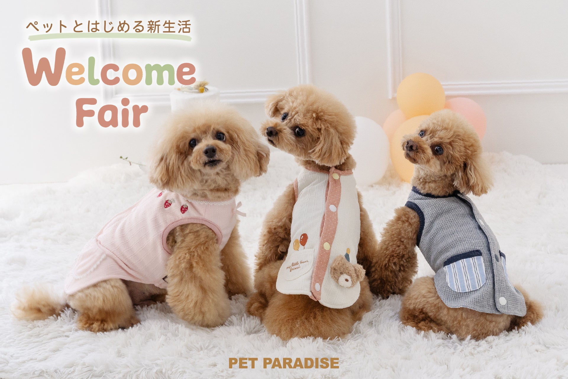 『ペットパラダイス』は昨年11月にリブランディングし、新たに「ペットと人間の、新しいカンケイ」をブランドパーパスに掲げ、ペット主体の視点から新しい価値を提供するブランドへと生まれ変わりました。この度のウェルカムフェアは、愛犬の快適な暮らしを第一に考えるという理念のもと、着せやすさにこだわった衣類を中心に機能性とおしゃれを両立した商品を提案しています。今後も、愛犬と飼い主さまの豊かな生活に貢献できるよう、新しい価値の創造に努めてまいります。
