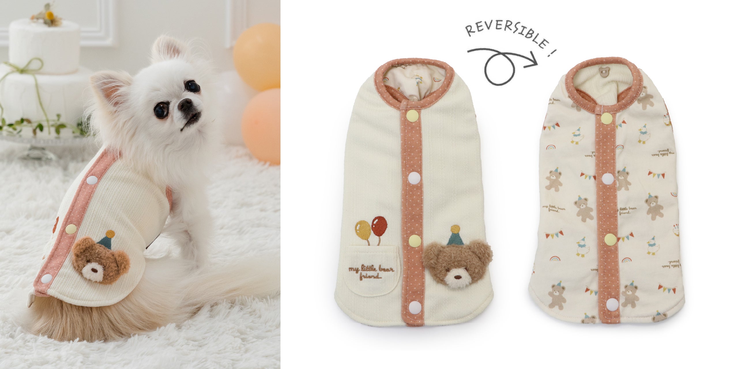 本フェアでは、初めてお洋服を着るワンちゃん、お洋服が苦手なワンちゃんに適した、着せやすさと快適さを両立し、愛犬と飼い主さまの双方に優しい商品を拡充して提案します。