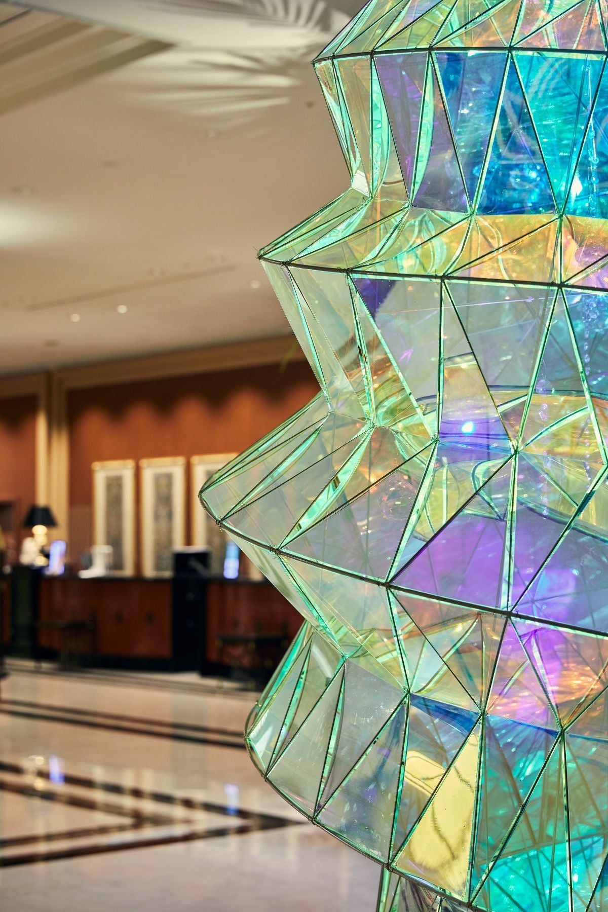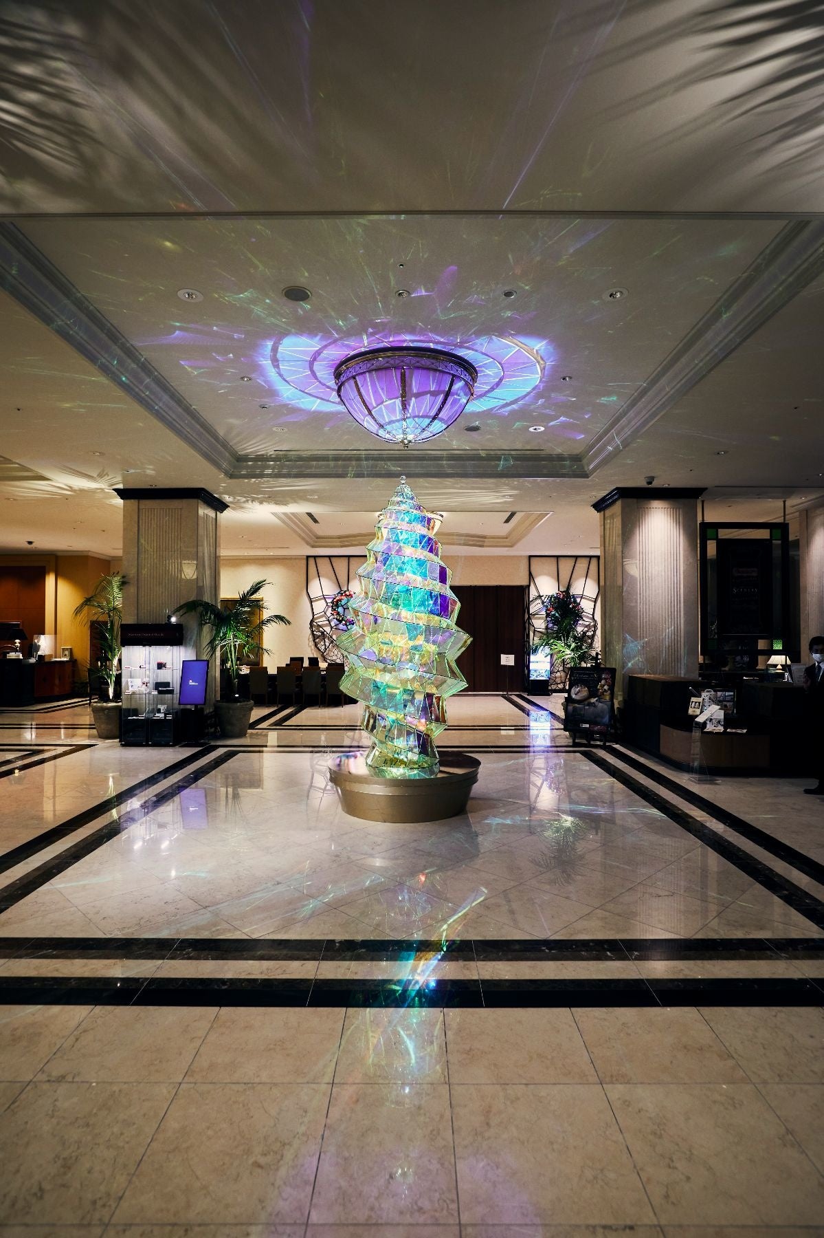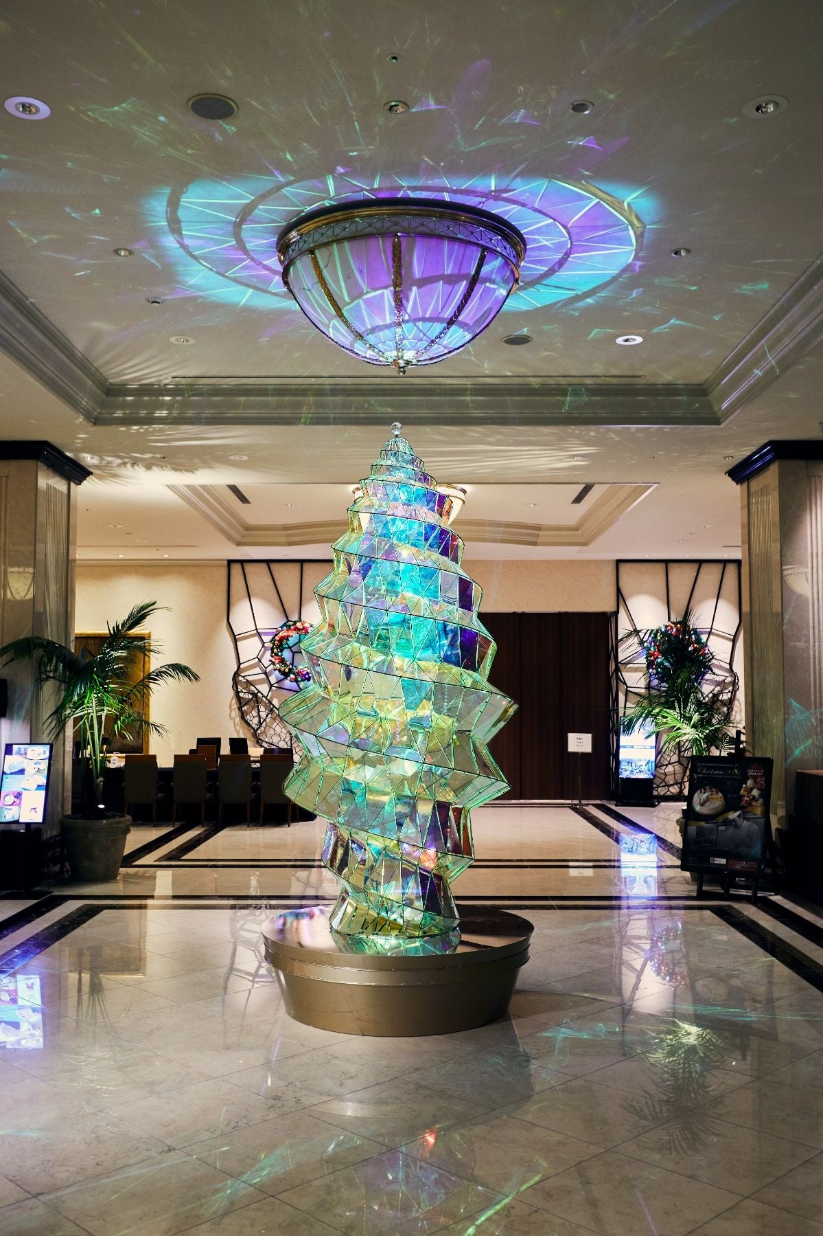 名古屋マリオットアソシアホテルに、虹色にきらめくツリーが登場。ツリーの中には美しく輝くクリスタルガラス・スワロフスキーをあしらい、投影された光の反射・屈折によってさまざまな表情を織り成します。