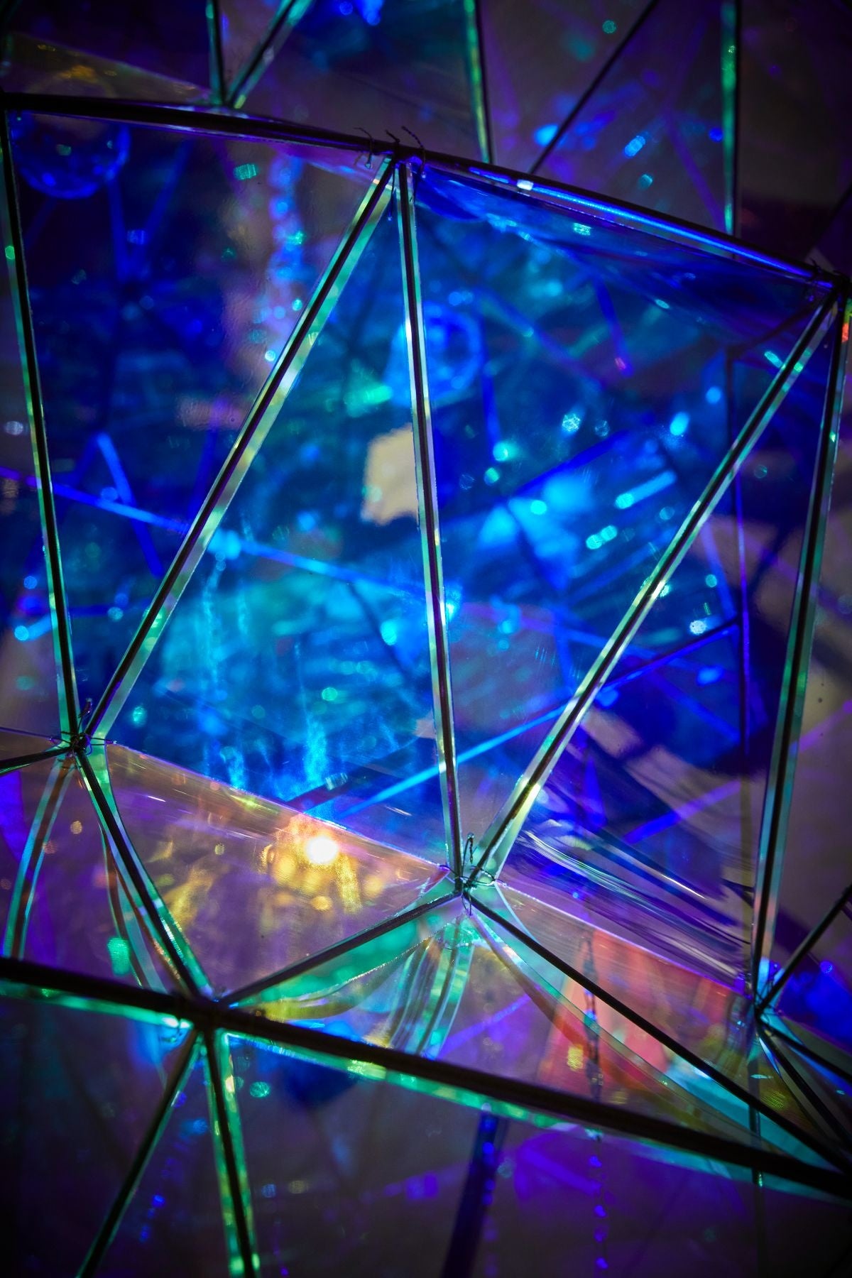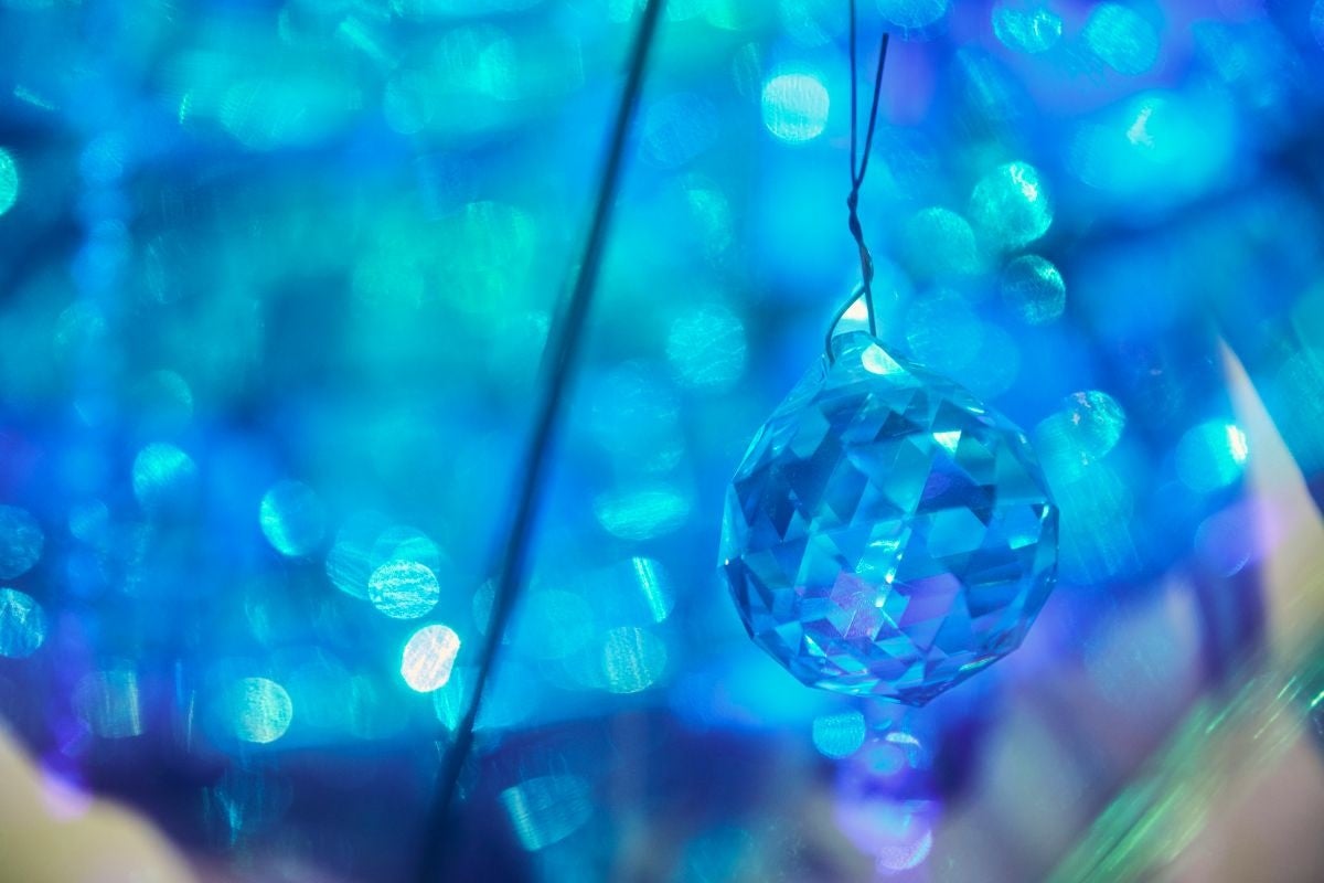 クリスタルをかたどった宝石のようなオブジェ。ツリーの中には美しく輝くクリスタルガラス・スワロフスキーをあしらい、投影された光の反射・屈折によってさまざまな表情を織り成す。