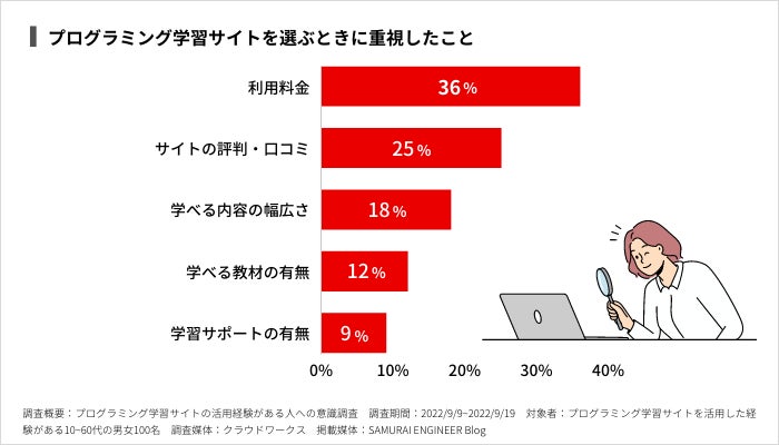【プログラミング学習サイトの活用経験がある人への意識調査】学習サイトを選ぶ際は「利用料金」が最も重視されている