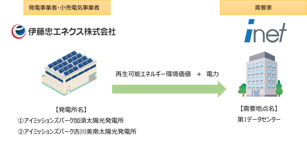 株式会社アイネット(東証プライム:コード番号9600、本社:神奈川県横浜市、代表取締役:佐伯 友道、以下「アイネット」)は、伊藤忠エネクス株式会社(東証プライム:コード番号 8133、本社:東京都千代田区、代表取締役社長CEO:吉田朋史、以下「伊藤忠エネクス」)が開発・所有する太陽光発電所で発電した電力の利用を開始いたしました。