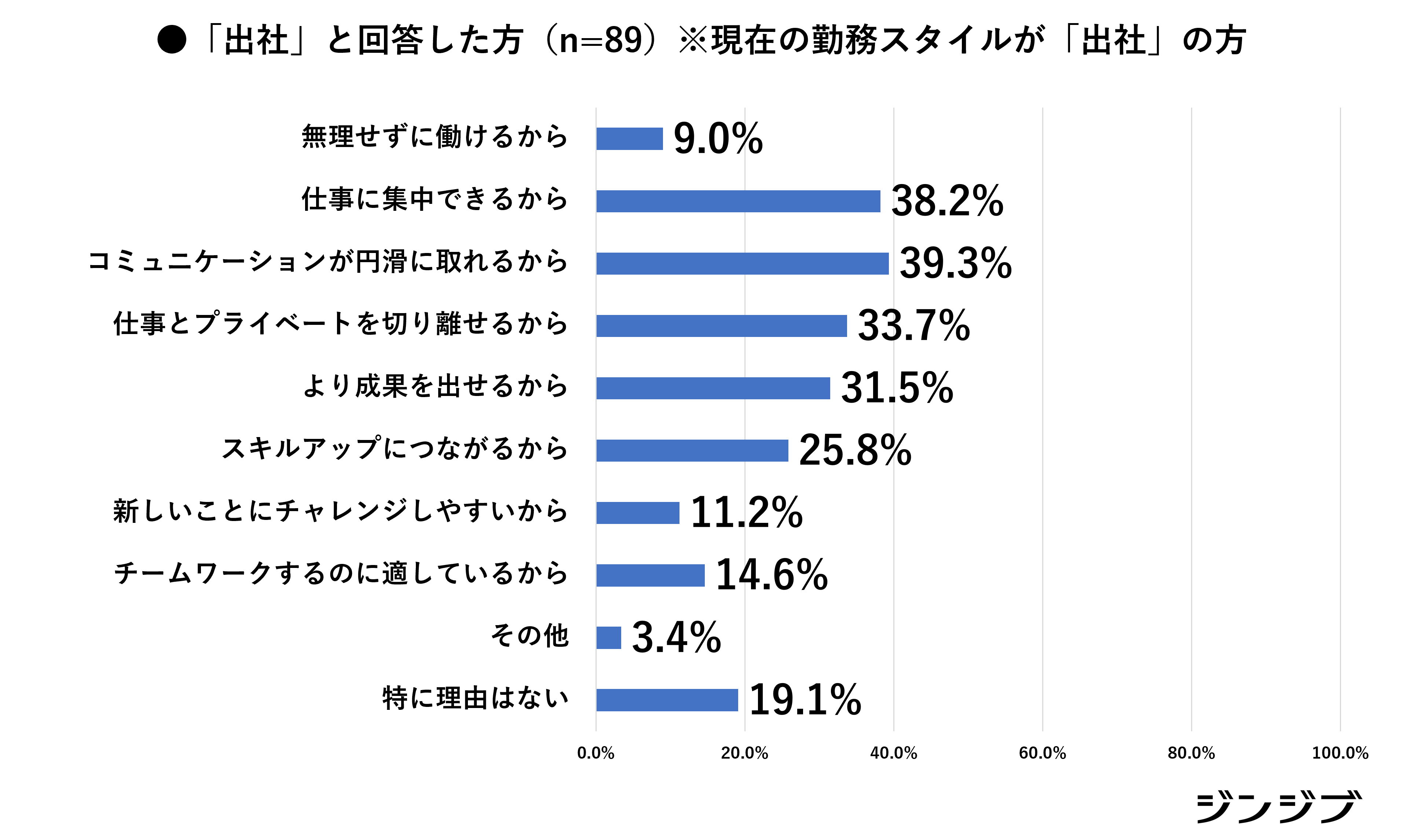 ●「出社」と回答した方(n=89)※現在の勤務スタイルが「出社」の方