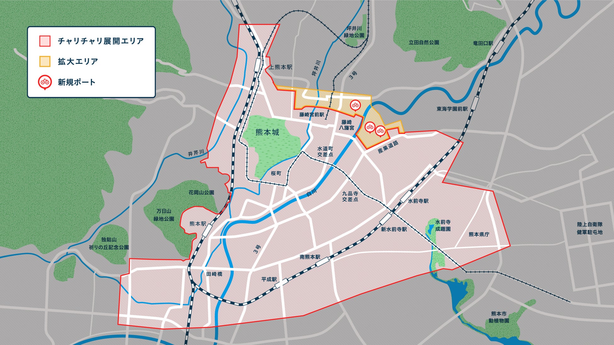 今回のエリア拡大と合わせて新たに駐輪ポートを順次開設し、熊本市内のより広域エリアにおいて、渋滞問題などの交通課題の解決と周辺エリアの回遊性の向上を目指してまいります。また、引き続き、熊本の地元企業や地元団体等の皆さまとの連携を図りながら、より利便性の高い高密度でのポート設置を進め、強じんな熊本の交通モードづくりに貢献していきたいと考えております。