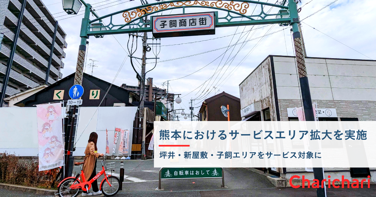 シェアサイクルサービス『チャリチャリ』、熊本におけるサービスエリア拡大を実施