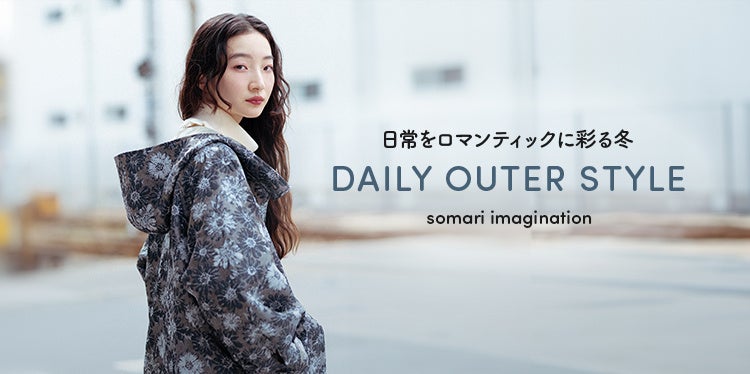 somari imaginationでは、羽織るだけで気分が上がるロマンティックなこだわりを詰めこんだアウターが多数ラインナップ。そんなアウターで日常を彩るスタイリングをご提案します。