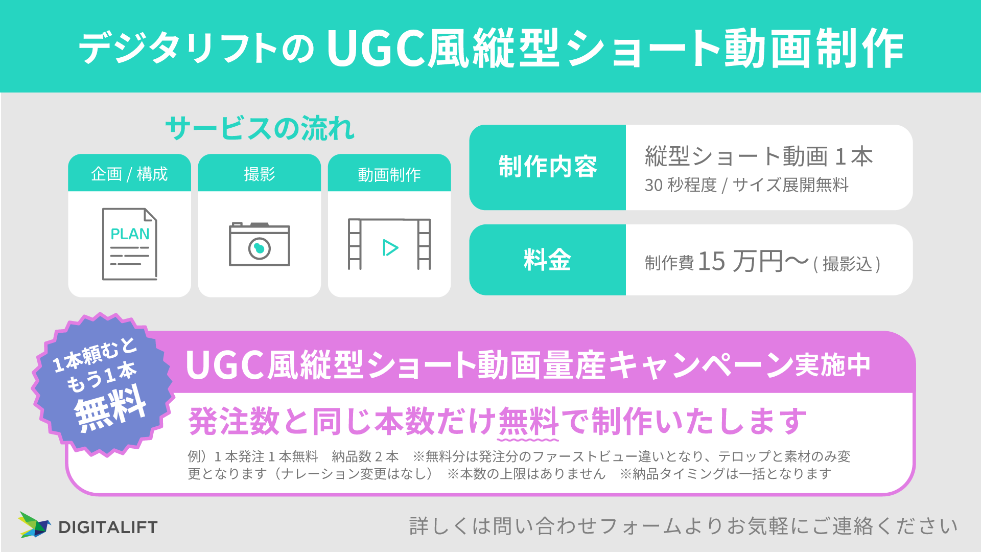 【期間限定6/20まで】デジタリフト、UGC風縦型ショート動画が1本頼むともう1本無料になる「UGC風縦型ショート動画量産キャンペーン」をスタート