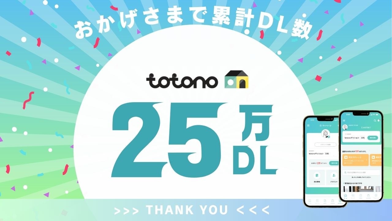 不動産賃貸マーケットに対してテクノロジーを活用したサービスを提供する株式会社スマサポ(本社:東京都中央区、代表取締役社長CEO:小田 慎三、証券コード:9342、以下 スマサポ)が提供する入居者アプリ「totono」が、累計25万ダウンロードを突破したことをお知らせいたします。