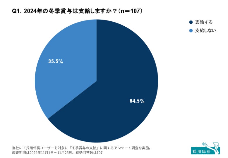 はじめに、2024年冬季賞与の支給予定について質問しました(n=107)。