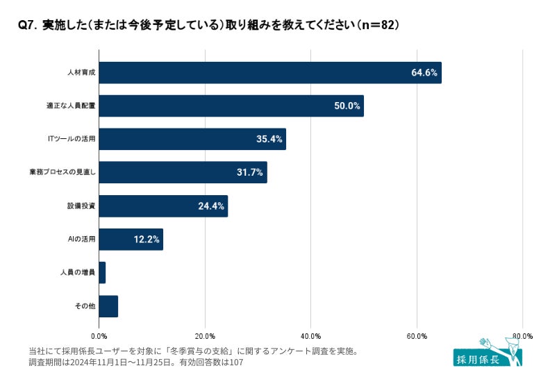 取り組み内容は「人材育成」「人員配置」が半数以上