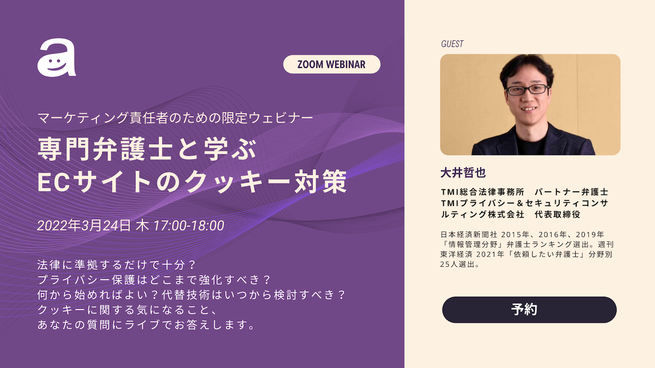 マーケティング責任者のための限定ウェビナー「専門弁護士と学ぶECサイトのクッキー対策」