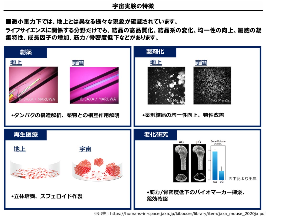 今回、新たに国立研究開発法人宇宙航空研究開発機構(JAXA)からきぼう有償利用案件の新たな減免制度(※1)が開始されたことを受け、今後更なるISS利用のハードルが下がることが期待されています。当社はこれまで、JAXAから唯一の民間パートナーとして選定された国際宇宙ステーション日本実験棟「きぼう」での高品質タンパク質結晶生成実験事業で、多くのアカデミア及び民間ユーザーのサンプル打上げを成功させてきました。お客様からサンプルをお預かりしたのち、地上でのサンプル評価、米国への輸送、打上/回収、お客様へのデータ返却までを一手に担っております。